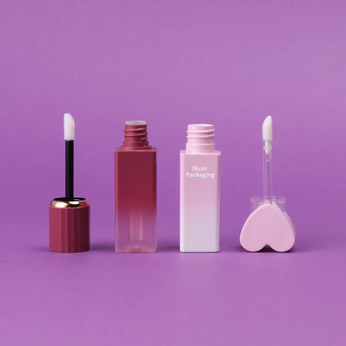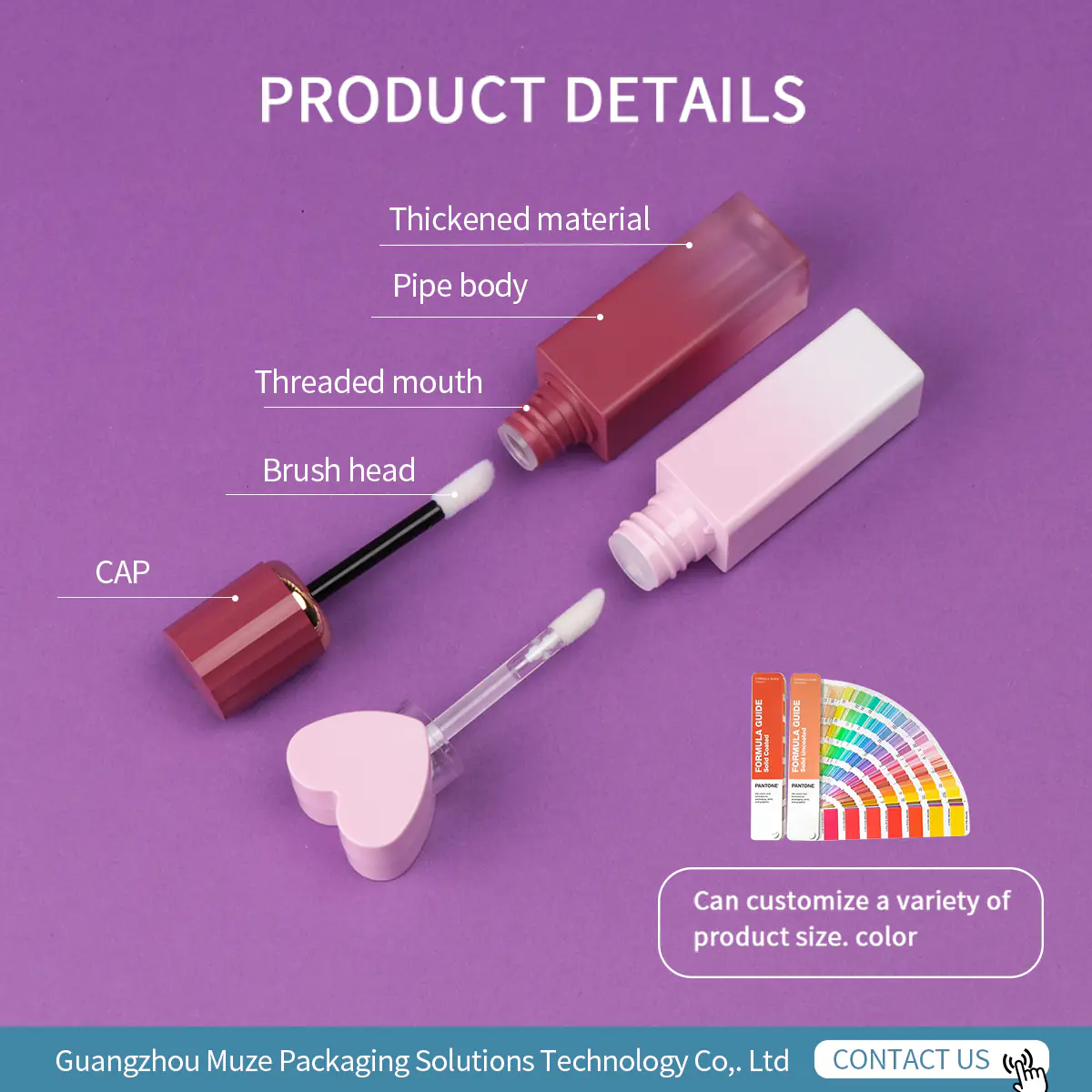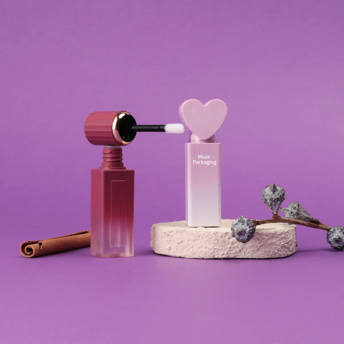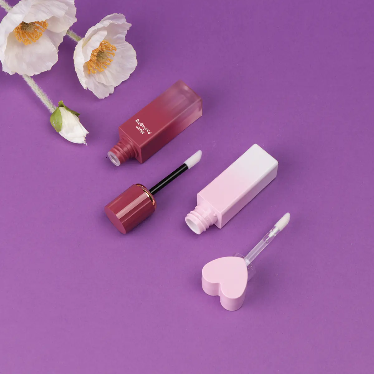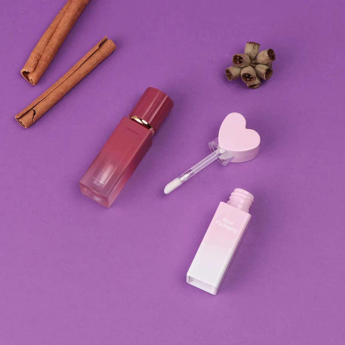 Design Square frosted tube with gradient color finish, unique heart-shaped screw cap