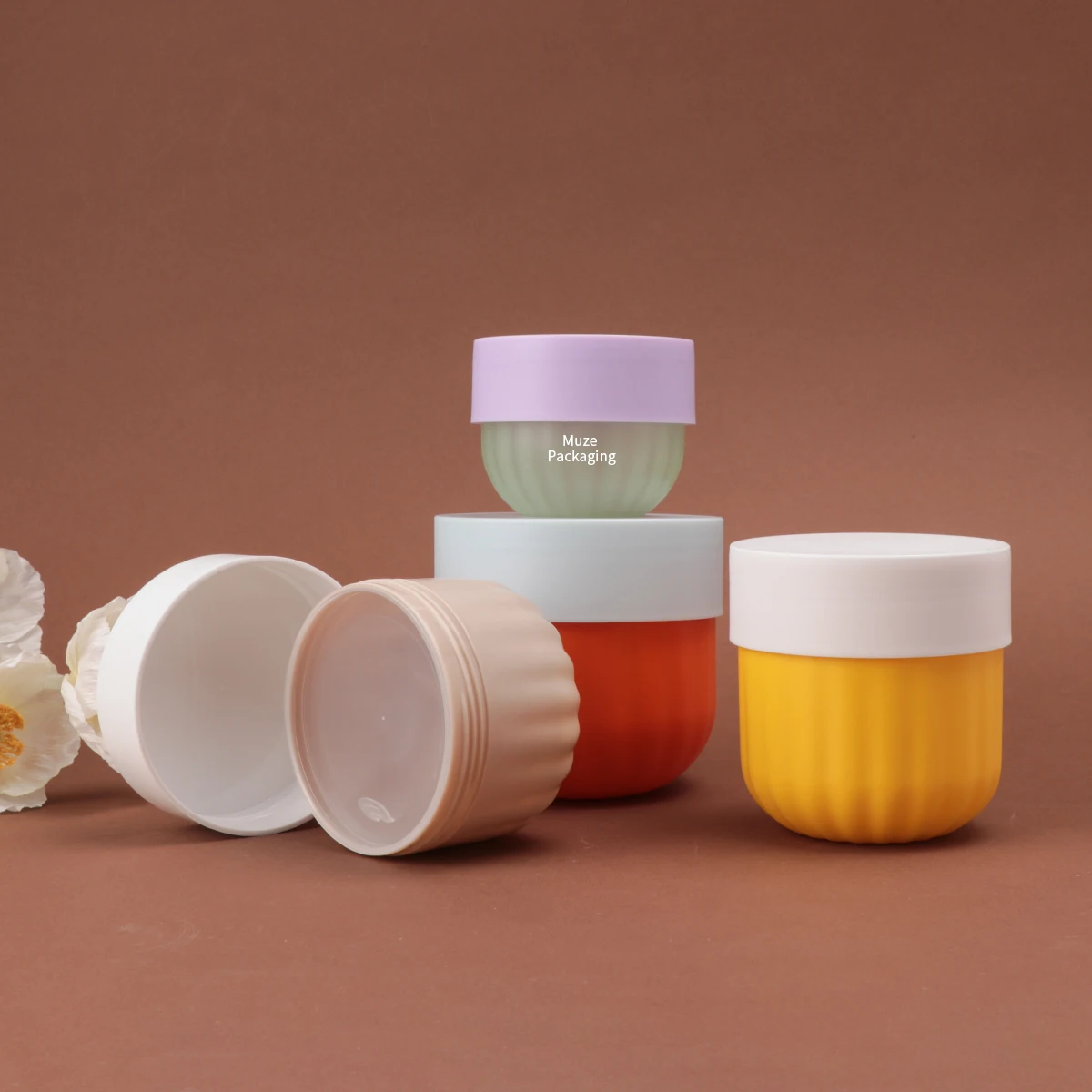 Pumpkin Shape Pink Color PP Cosmetic Jar With Pink Screw Cap and Clear Hand Pull Gasket Plastic Container for Skin Care